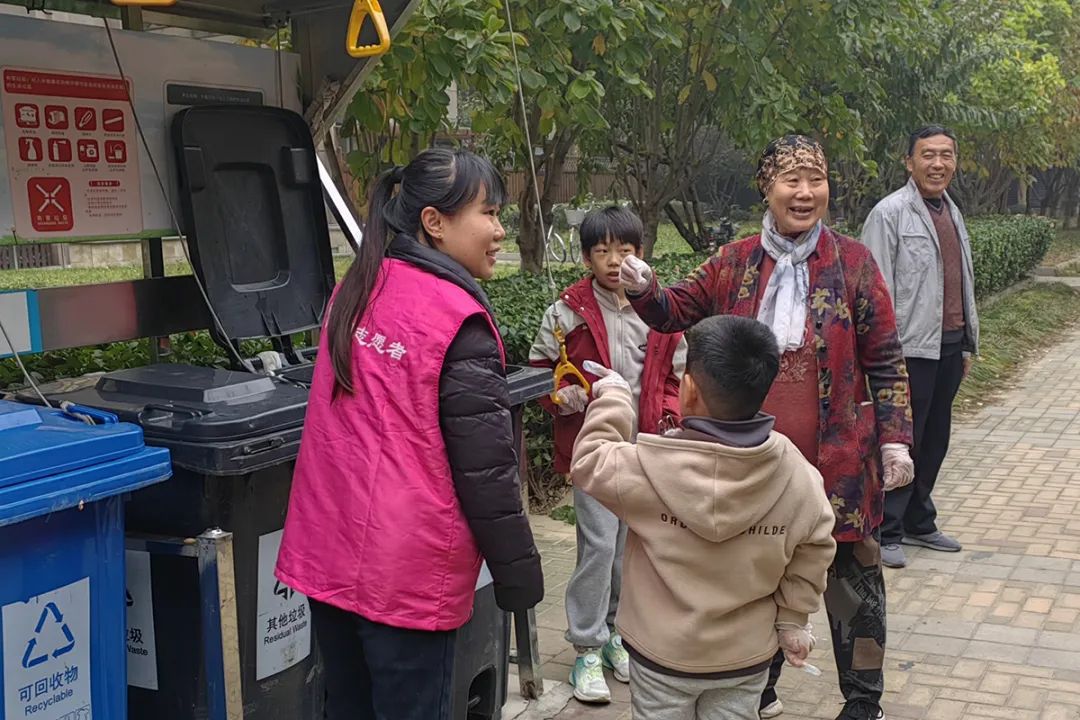 双丰街道香悦四季西区居民参与垃圾分类志愿服务活动。
