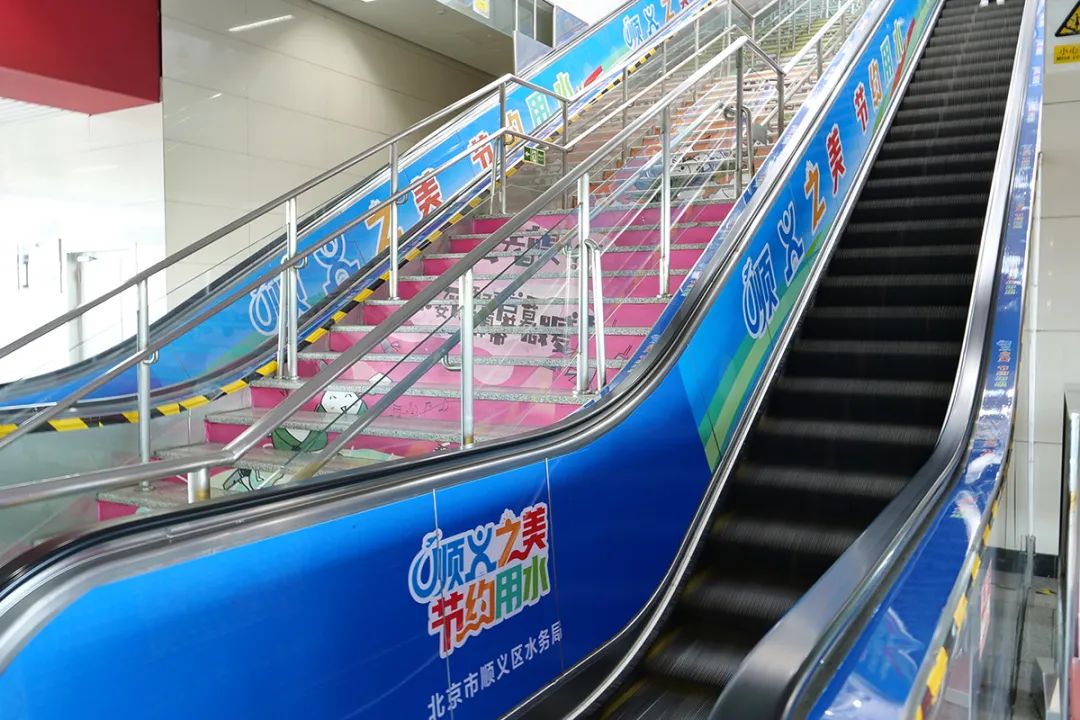 顺义区充分利用地铁站人流量大的特点,在地铁15号线顺义站、俸伯站、后沙峪站张贴节水主题标识,让地铁站化身为节水宣传新阵地,让节水理念融入市民出行生活。