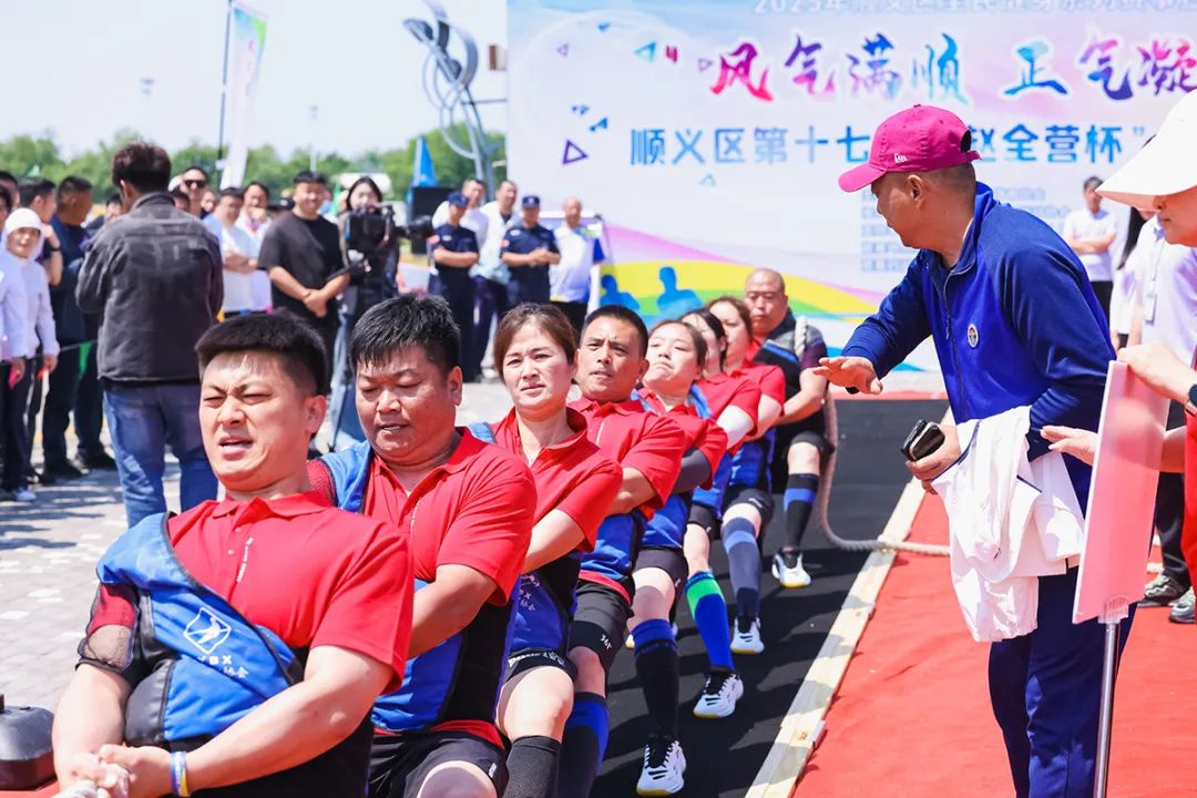 拔河赛场上,来自全区17个单位的300余名选手在600公斤混合赛中展开角逐。各参赛选手紧握长绳,扎稳马步,在整齐划一的口号中后仰发力。赛场边,加油助威声此起彼伏,现场气氛紧张而热烈。经过一番激烈比拼,仁和镇代表队摘得镇、街道组冠军,北汽越野车代表队获得委、办、局、公司组冠军。