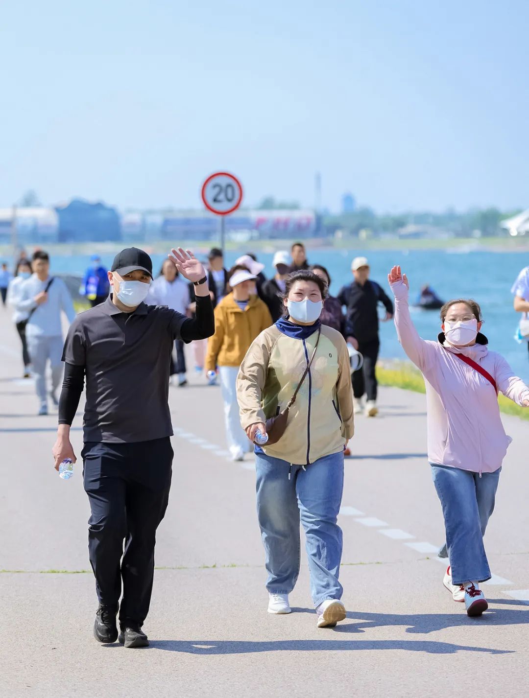 9时,来自全区54个单位的500余名徒步选手齐聚起点,踏上4.5公里的环湖赛道。大家三五成群,迈着矫健的步伐,一边交流一边欣赏沿途美景,感受运动带来的愉悦和舒畅。