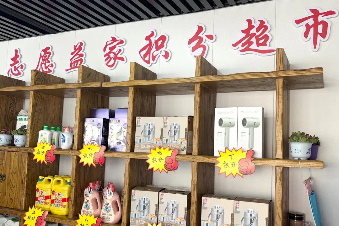 村民参与志愿服务秉持着自愿付出的初心,南彩村也以独特的方式与志愿者双向奔赴。今年1月,志愿“益”家服务站的积分超市开业,村民参与志愿服务获得积分即可兑换生活用品,村民参与热情倍增,营造了“学有榜样、行有示范、赶有目标”的好风气氛围。