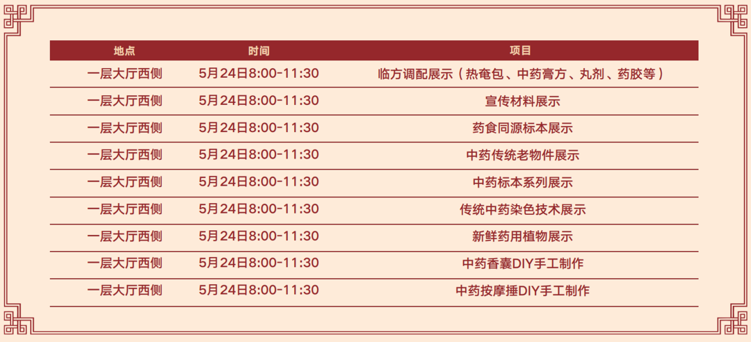 现场参与DIY香囊制作与DIY中药按摩锤制作、品尝各类养生膏方及代茶饮,另创新设置沉浸式养生体验区,温经活血足浴站、养生茶饮吧等待您体验,同时,将展出热奄包、中药标本、鲜药绿植、传统中医老物件、传统中药染色技术等本草物品,让您在探索中医药魅力的同时,也将养生宣传品带回家!