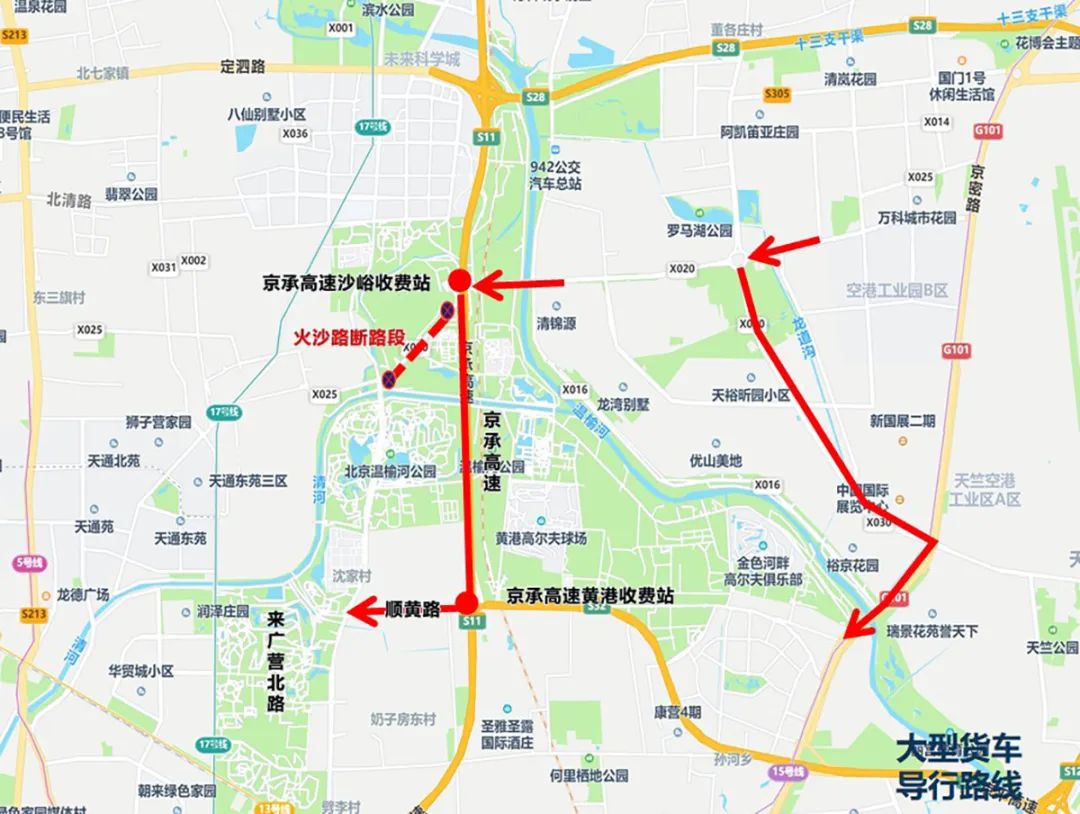 顺义区融媒体中心消息 为配合实施北京温榆河公园蓄滞洪区建设,2025年5月30日20时起,对火沙路(京承高速—来广营北路段)进行断路施工,两条公交线路同步绕行,请广大市民提前规划出行路线。