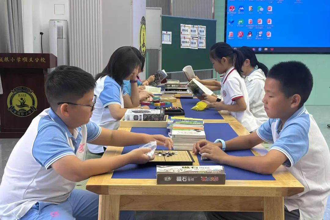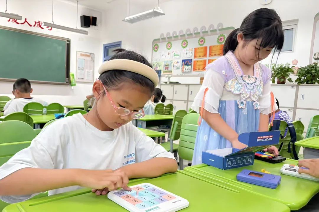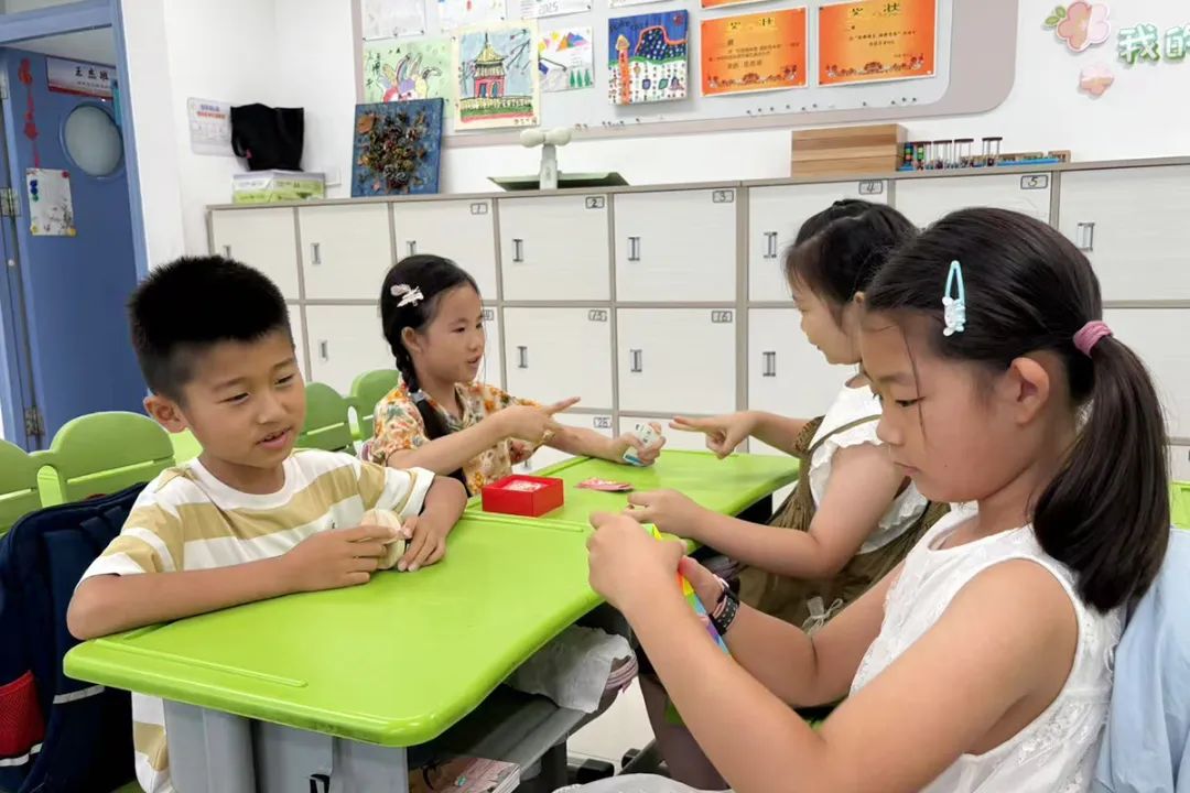 黄城根小学顺义分校的托管活动同样精彩。点名签到后,老师为孩子们播放红色电影,大家看得聚精会神。随后,孩子们根据兴趣,自主选择参加益智游戏、练字等活动。