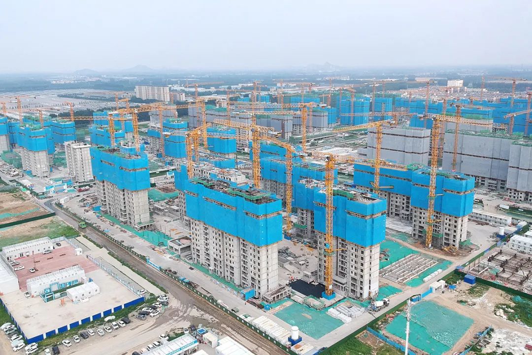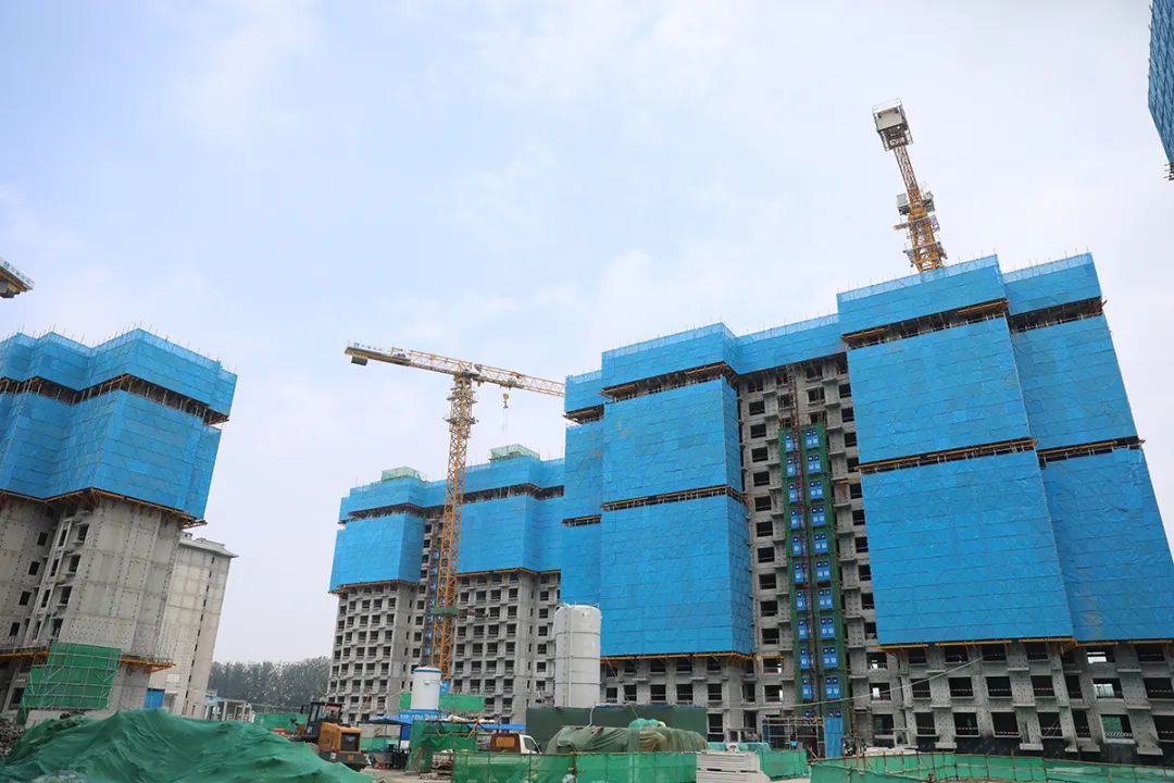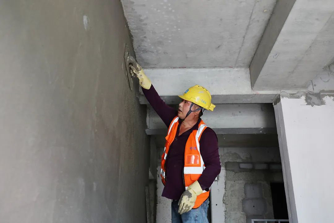 走进杨镇棚改项目安置房工程施工现场,70余台塔吊林立、长臂挥舞,机械轰鸣,5000余名工人穿梭忙碌,一片热火朝天的繁忙景象。室内,测量、二次结构砌筑等工序正有条不紊推进中。