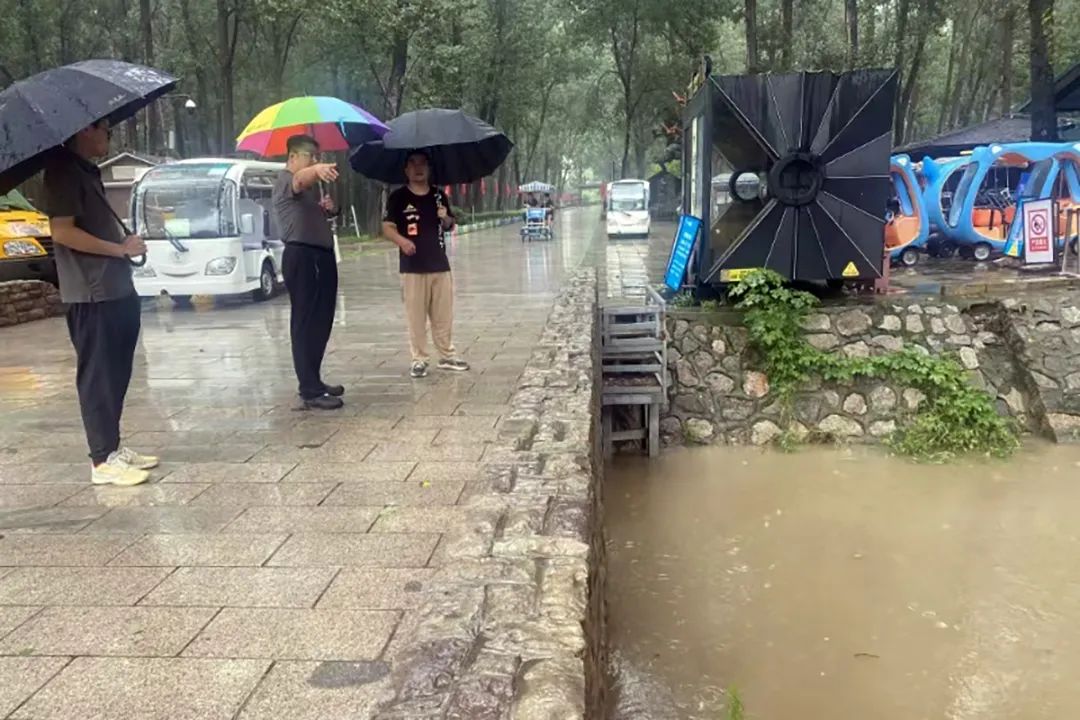 木林镇组织人员力量前往木林村、贾山村、唐指山村、舞彩浅山步道登山口等关键点位,检查排水设备运行、景区封闭等工作情况,保障群众生命财产安全。