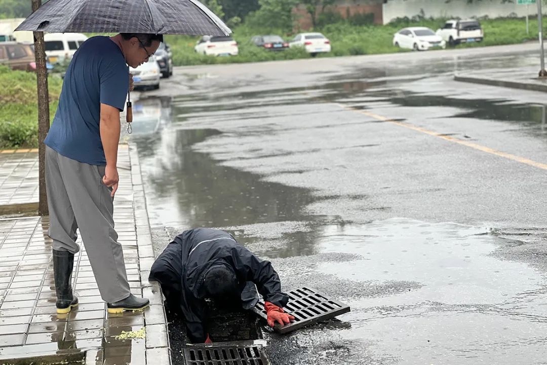 石园街道各社区对辖区内低洼地带等易积水点位进行重点排查,逐一清理各排水口树叶及杂物,确保排水管道畅通无阻。