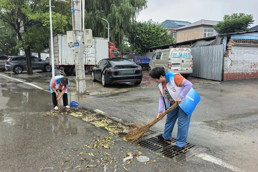 大孙各庄镇工作人员及时排查低洼地段、易积水点位等重点区域,对辖区雨水箅子、明沟暗渠等设施内的杂物进行全面清理疏通,防止雨道堵塞。