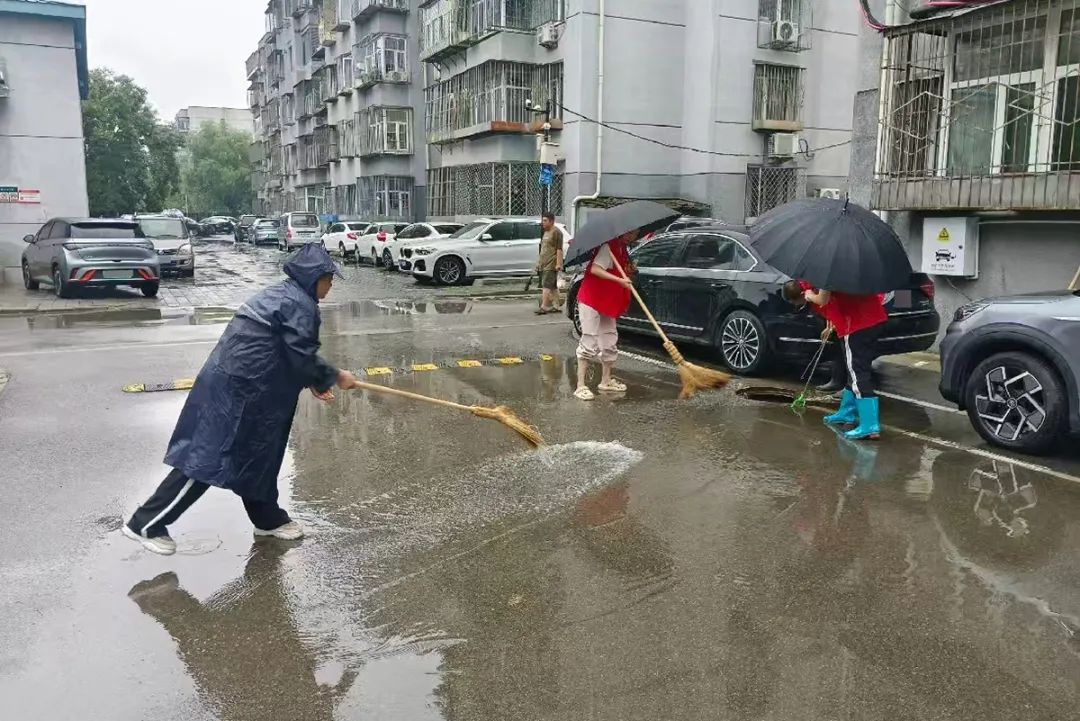 胜利街道各社区组织专人排查低洼路段等区域,并及时清扫路面积水,在湿滑路段铺设防滑垫、设置警示标识等,保障居民出行安全。