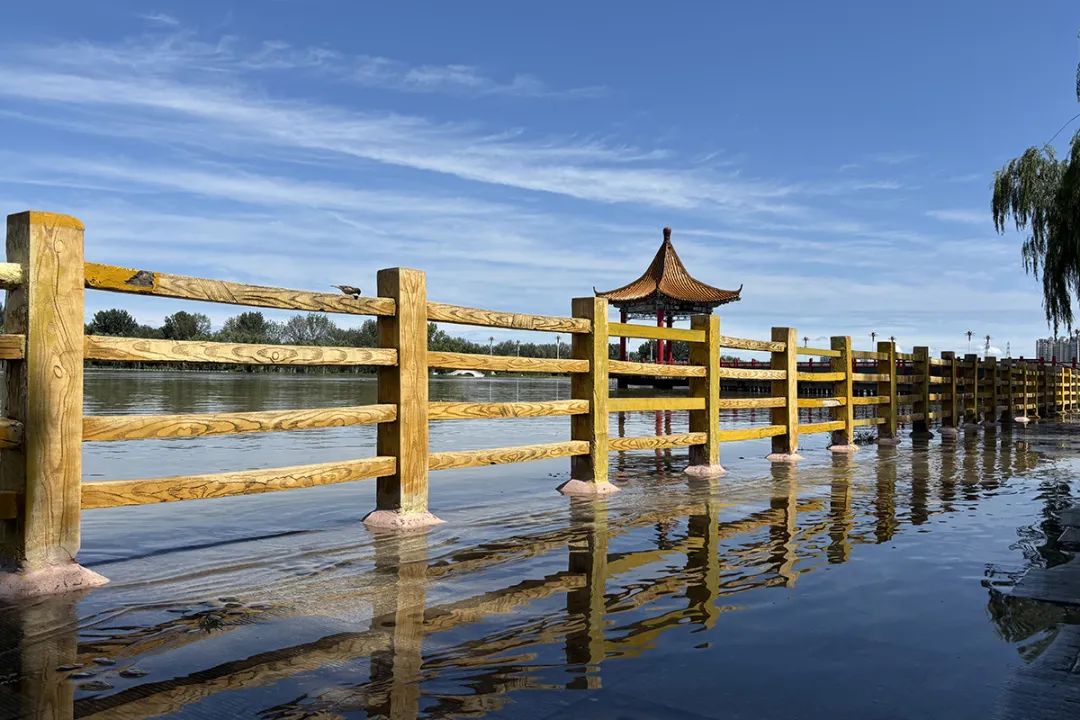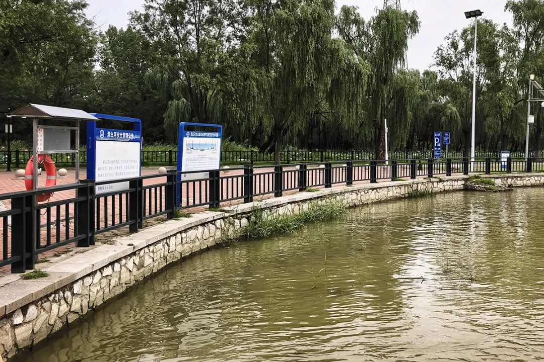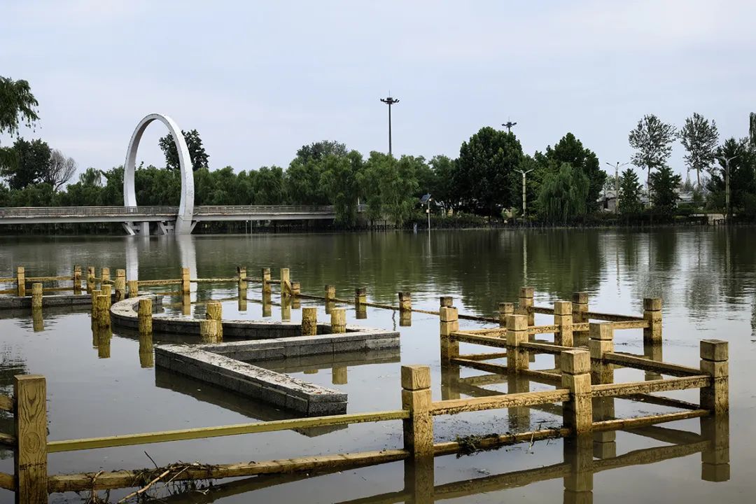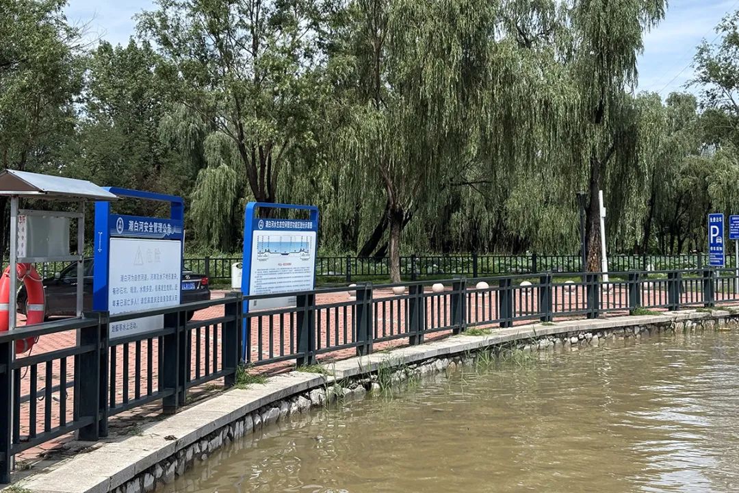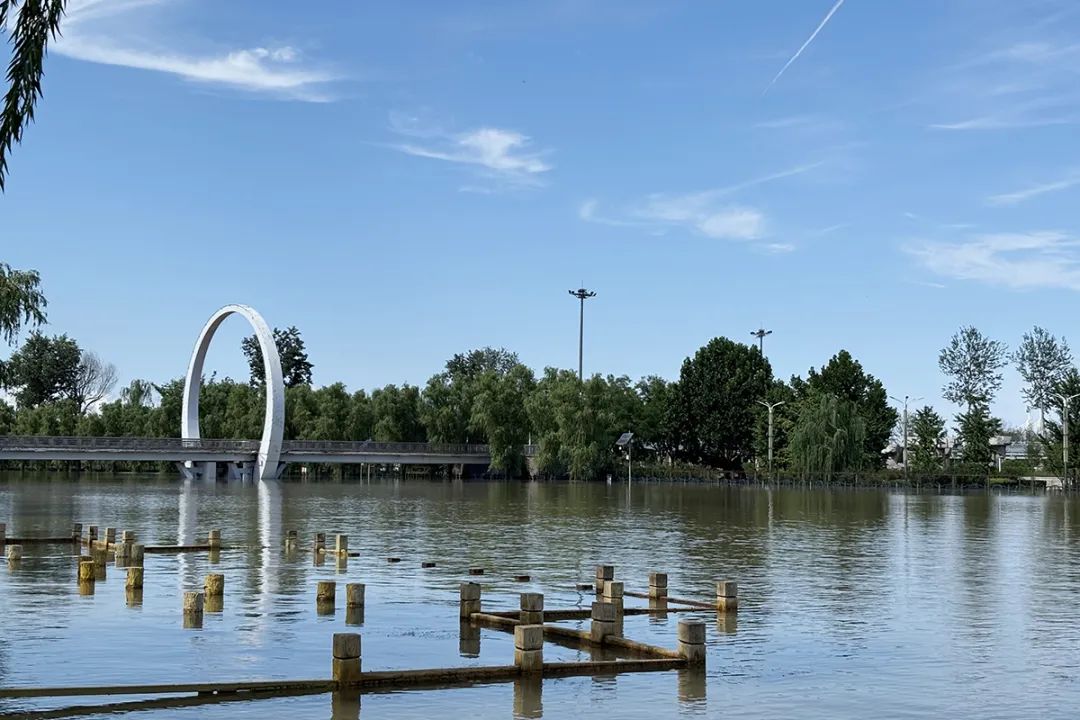 减河公园内,此前被河水淹没的步道如今已露出地面,护栏上清晰的水印,直观展现出水位下降的态势。