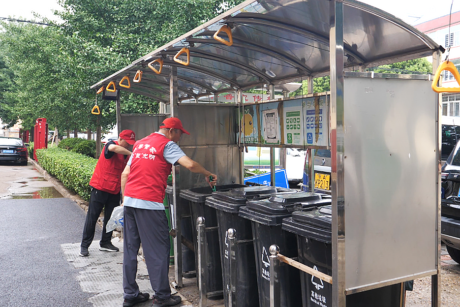 “李姐,您家的垃圾分类做得越来越规范了。”