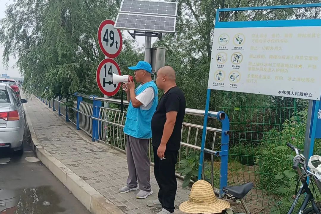 木林镇紧盯大秦铁路桥下、京承高速桥下、耿辛庄桥下、左堤路大福路交叉口四个重点点位,出动镇村两级值守力量40余人,实行镇村2+2专人值守,24小时轮岗,实时劝离靠近河岸游玩、垂钓人员,确保“人不上堤、车不近岸”。