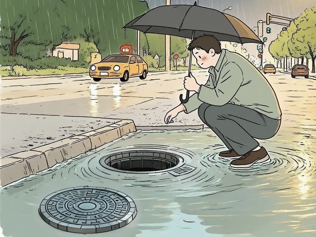 雨夜中守在井旁,用身体提醒行人车辆的牛栏山镇村民。