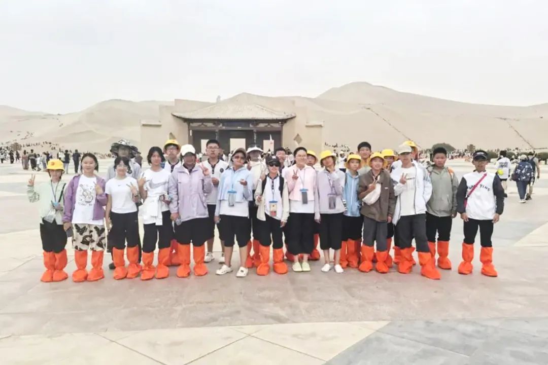 在鸣沙山月牙泉,大家一同探究鸣沙声学原理,追溯地下水源脉络,用镜头记录“沙不填泉,泉不涸竭”的自然奇观,思考生态保护之道。嘉峪关城楼前,学生们抚摸斑驳城墙,探讨古代烽燧在现代科技中的重生可能,感受雄关承载的厚重历史。