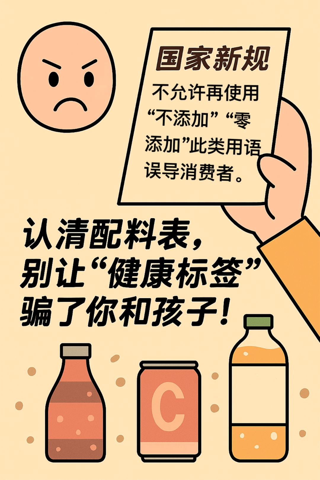 此次国家标准更新,明确规定:预包装食品不得使用“不添加”“零添加”等表述!这类用语容易误导消费者,会让公众忽略产品真实的营养成分和潜在健康风险。