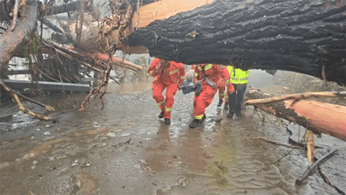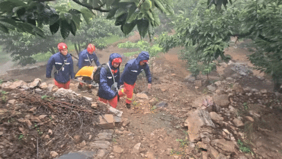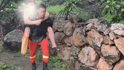 刚完成这次救援,队员们又接到求助:一名94岁老人因慢性脊椎病无法行动,意识已经模糊,情况危急。队员们毫不犹豫,再次抬起担架,考虑到老人在转运过程中可能突发不适,还特意带上了毯子、防水布等保暖防雨装备。过石头、躲树枝、趟河流、涉泥地……队员们用20分钟将老人转移至安全区域。