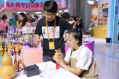来到西单西北角,这里搭建起一个“助农直播间”,戴着草帽的少年正在带货。