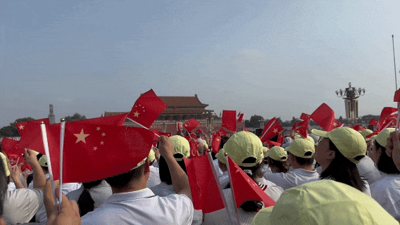 早上,阳光洒在天安门广场,暖场合唱的歌声缓缓响起,纪念大会即将开始,我的心情变得格外激动。我身旁不少观众也都纷纷跟随合唱团齐声歌唱。一首首经典歌曲宛如一条时光纽带,串联起中国人民抗日战争的壮阔历程。每一个音符都仿佛在诉说着那段艰苦卓绝的岁月。我的思绪也随之飘远,仿佛看到了先辈们在战火中奋勇拼搏的身影。