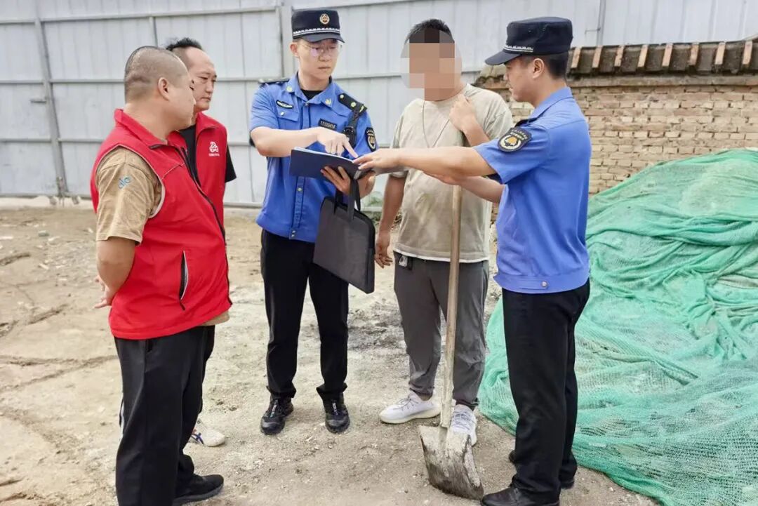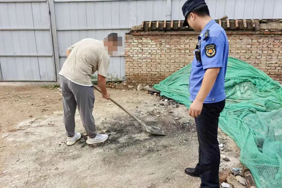 执法人员约谈违法当事人,督促其立即将所有倾倒垃圾清理干净。