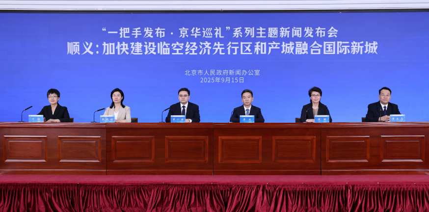 ▲9月15日,北京市人民政府新闻办公室举行“一把手发布·京华巡礼”系列主题新闻发布会——顺义:加快建设临空经济先行区和产城融合国际新城。顺义区政府主要负责同志带队介绍相关情况并回答记者提问。北京市委宣传部对外新闻处处长叶昶主持。