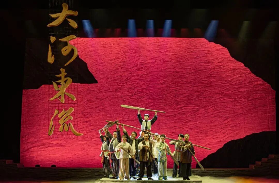 陇剧《大河东流》讲述了上世纪三十年代末,在烽火连天的抗战背景下,兰州刘王两家筏客栈在民族危亡之际,在八路军驻兰州办事处的引导下,主人公朱槐花和王宝山以民族大义为重,摒弃个人恩怨,共同携手组织筏客队向抗日前线运送物资,演绎了一段尘封在历史深处,却又惊天动地的“羊皮筏子赛军舰”的传奇故事。