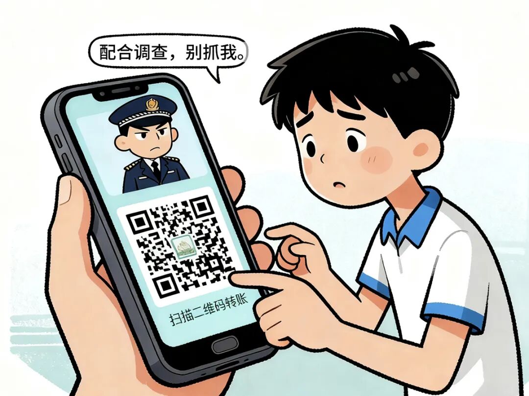 在得知张华手机并未开通支付功能后,“民警”诱导他使用父母的手机扫描二维码转账。害怕“涉案”的张华趁父母不注意,偷偷拿起妈妈的手机,在骗子的恐吓威胁下,分3次扫码转账,合计被骗1万元。