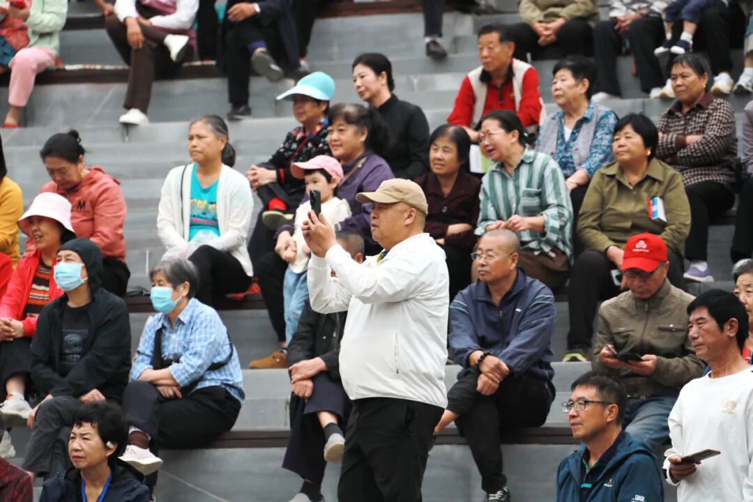 金牛山公园的台阶上,坐满了前来感受丰收喜悦的市民。