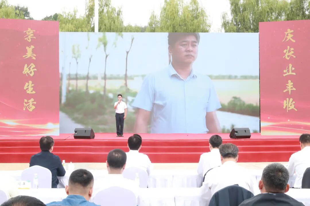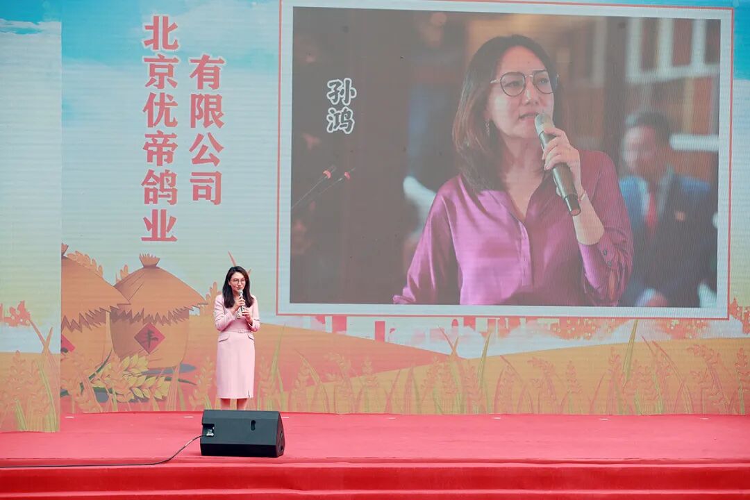 北京优帝鸽业有限公司等五家农业企业代表和现场观众分享丰收的喜悦。