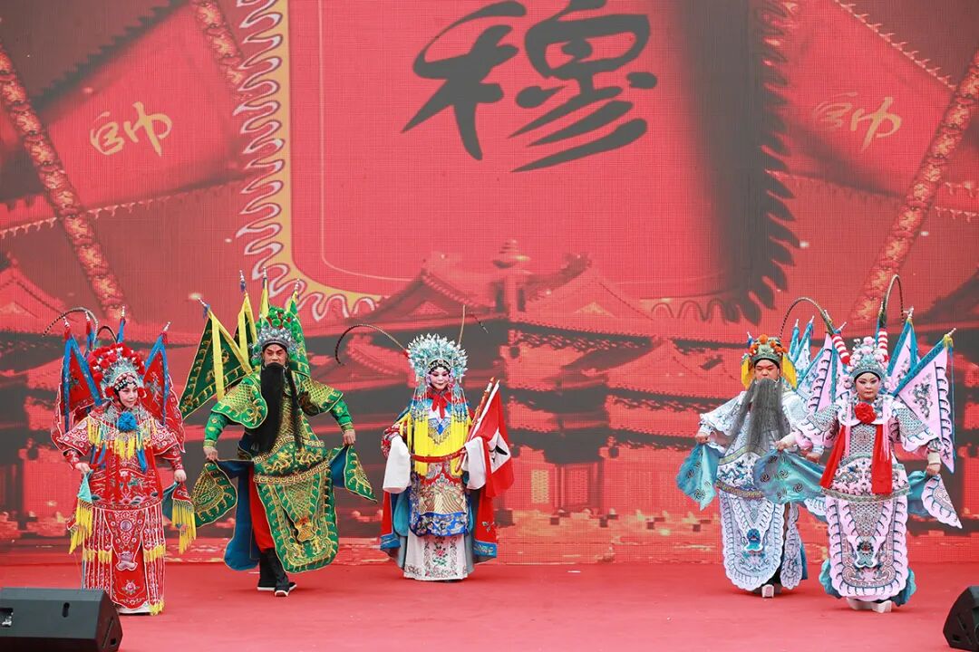 李桥镇农民表演豫剧《穆桂英挂帅》。