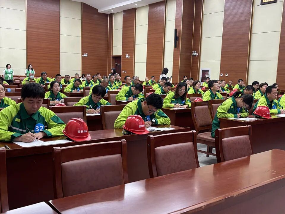 本次比赛包含理论、实操两项内容。理论考试内容涵盖树木生长习性、病虫害识别、植物分类等。选手们沉着答题,这份安静的较量,为接下来的修剪比拼“埋下伏笔”。