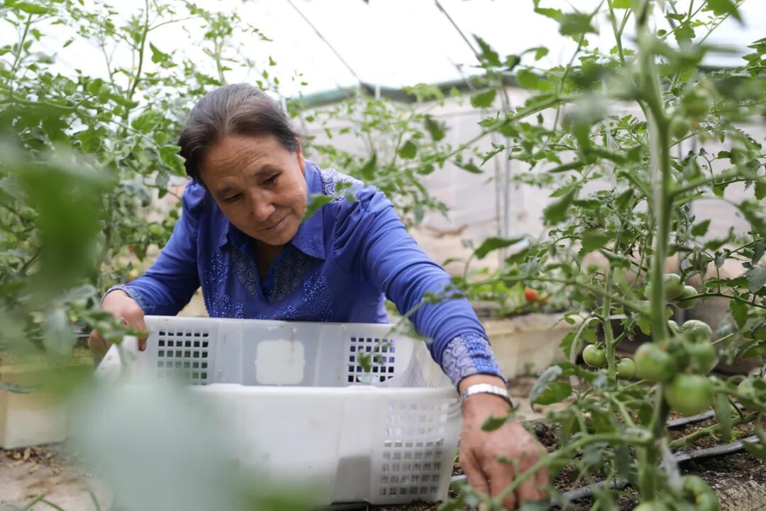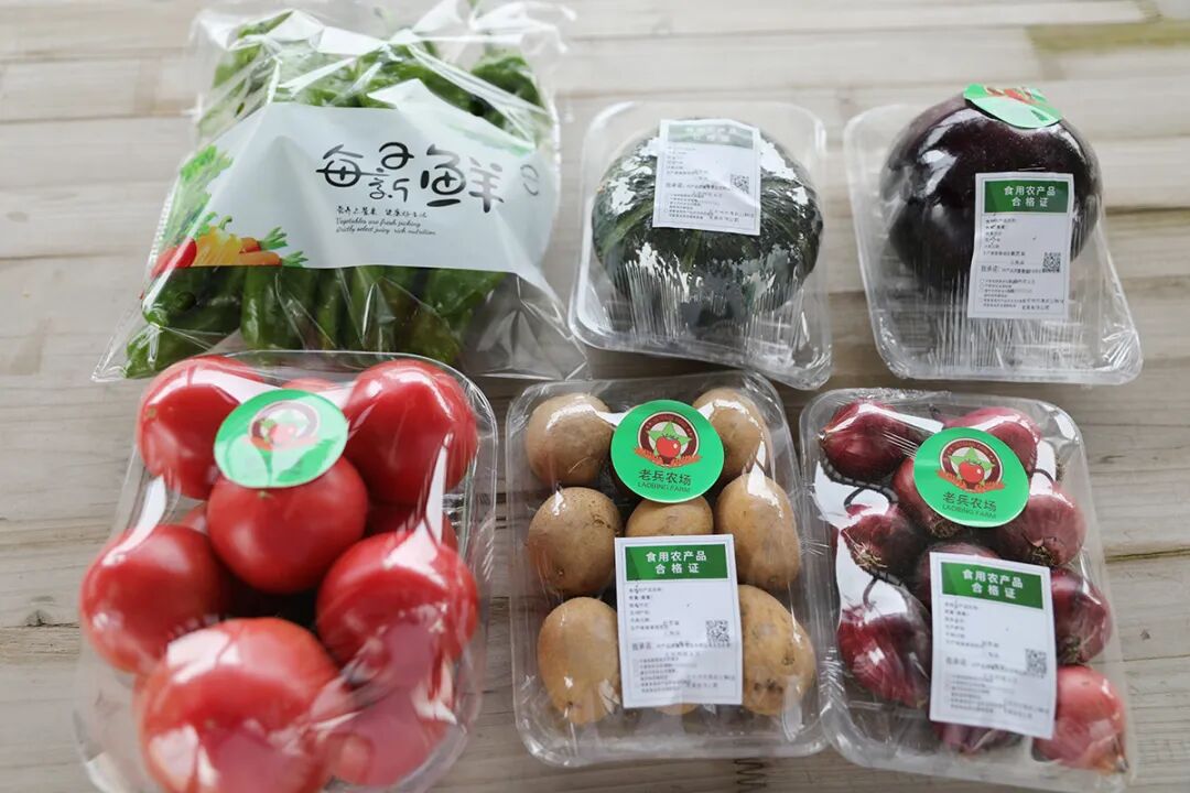 在北务镇老兵农场,工作人员正在采收辣椒、西红柿等蔬菜,新鲜的蔬菜将按照消费者下单的数量和规格,打包好后立即配送,确保新鲜不打折扣。