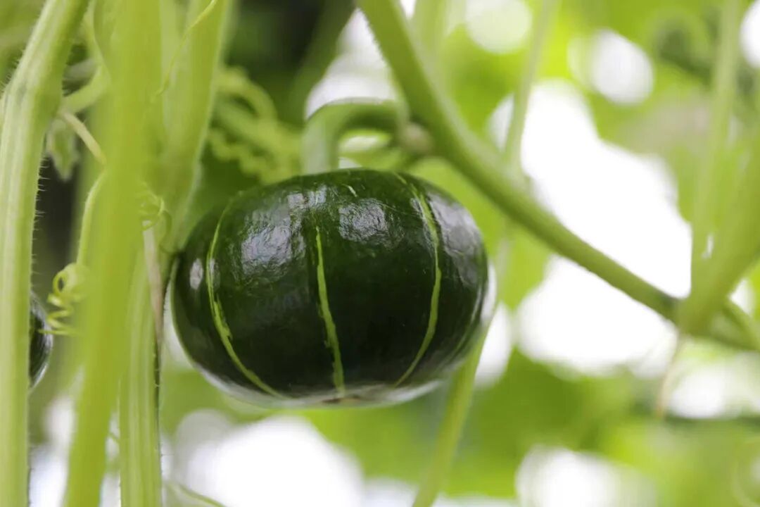 在老兵农场的蔬菜大棚里,藤蔓顺着支架蜿蜒攀爬,一个个拳头大小的贝贝南瓜挂在枝间,区供销社工作人员正在查看贝贝南瓜的长势。“我们十分注重‘控蔓’和‘授粉’,保证贝贝南瓜的口感粉糯、品相周正。” 农场负责人说。“后续管理上,要避免使用农药,保证产品品质。”区供销社工作人员特意叮嘱道。