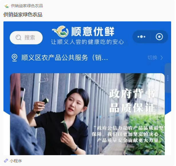 今年5月,区供销社启动顺义区农产品公共服务平台建设,打通了农产品全链条服务,为供销益家绿色农品小程序上线做足准备。此次升级上线后的小程序,将线下优质农产品资源“搬”至线上,实现源头直采,让消费者在一个平台挑选更多优质有机绿色农产品。货品从产地直接配送到家,京津冀地区发货后次日即可抵达。