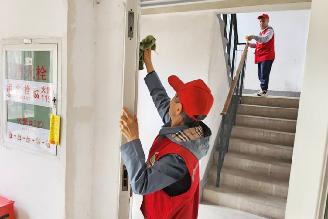 居民清理楼道。