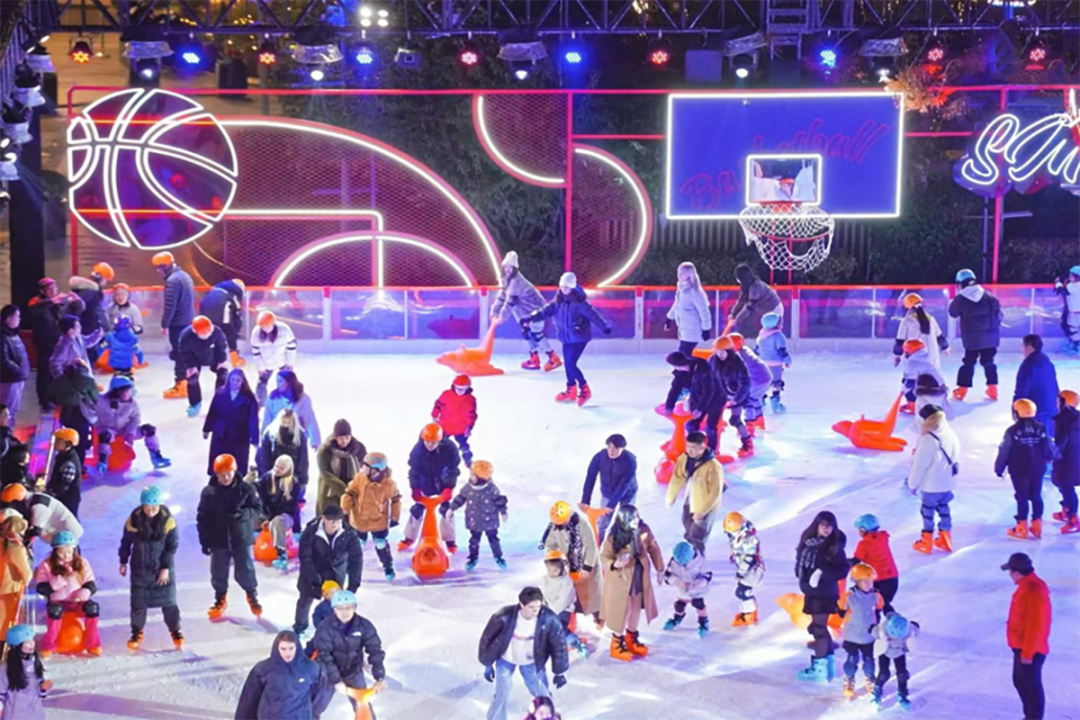 这里建筑面积约2万平方米,已入驻冰球场、篮球场、滑梯乐园等,未来将成为亚洲最大的冰球训练基地和休闲娱乐的理想场所。