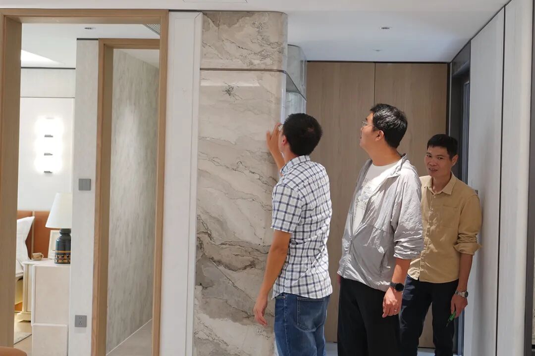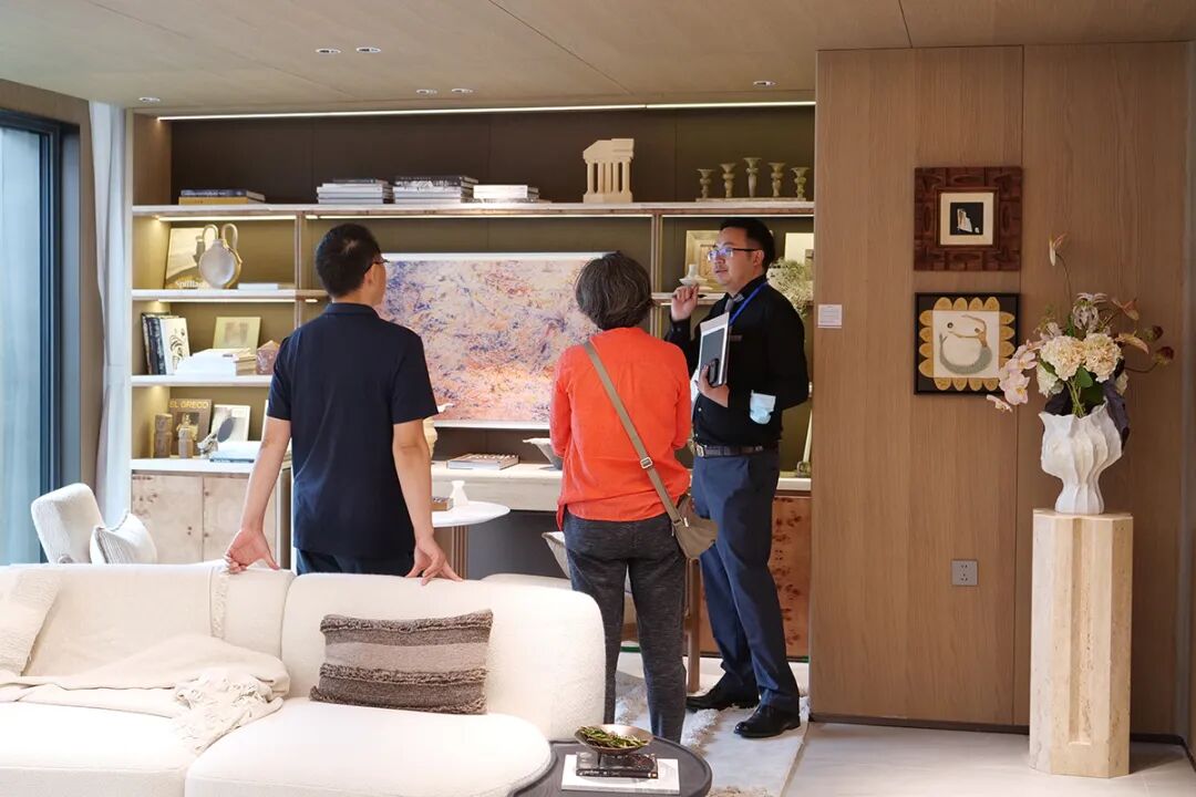 样板间开放期间,不少市民带着家人陆续走进大厅。沙盘区、户型咨询区、样板间通道前,随处可见驻足咨询的购房者,销售人员同时对接三四组客户的询问已是常态。