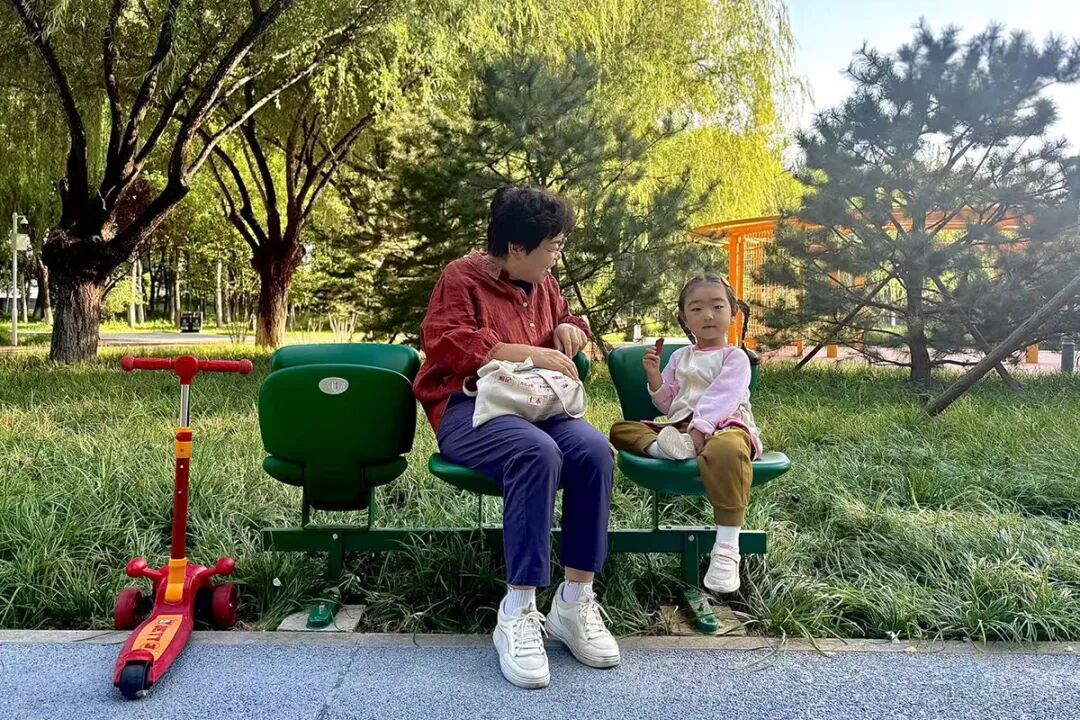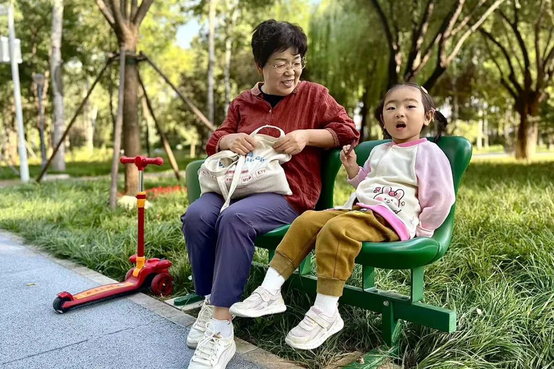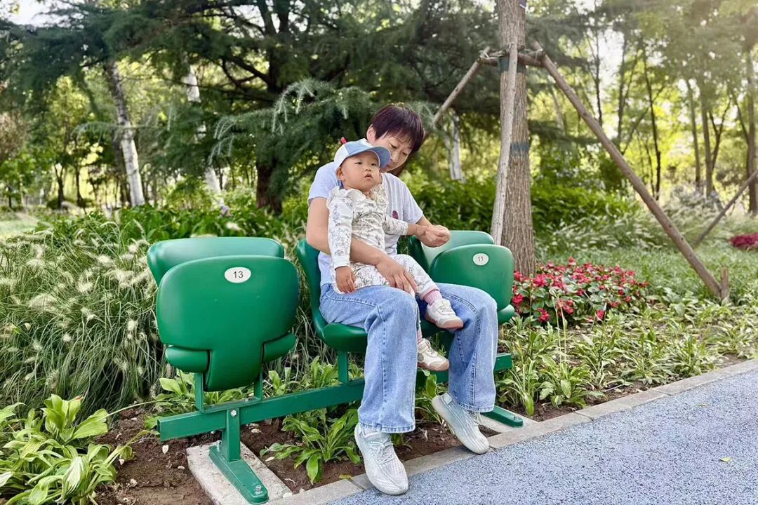 带着孙子在公园游玩的王春凤说