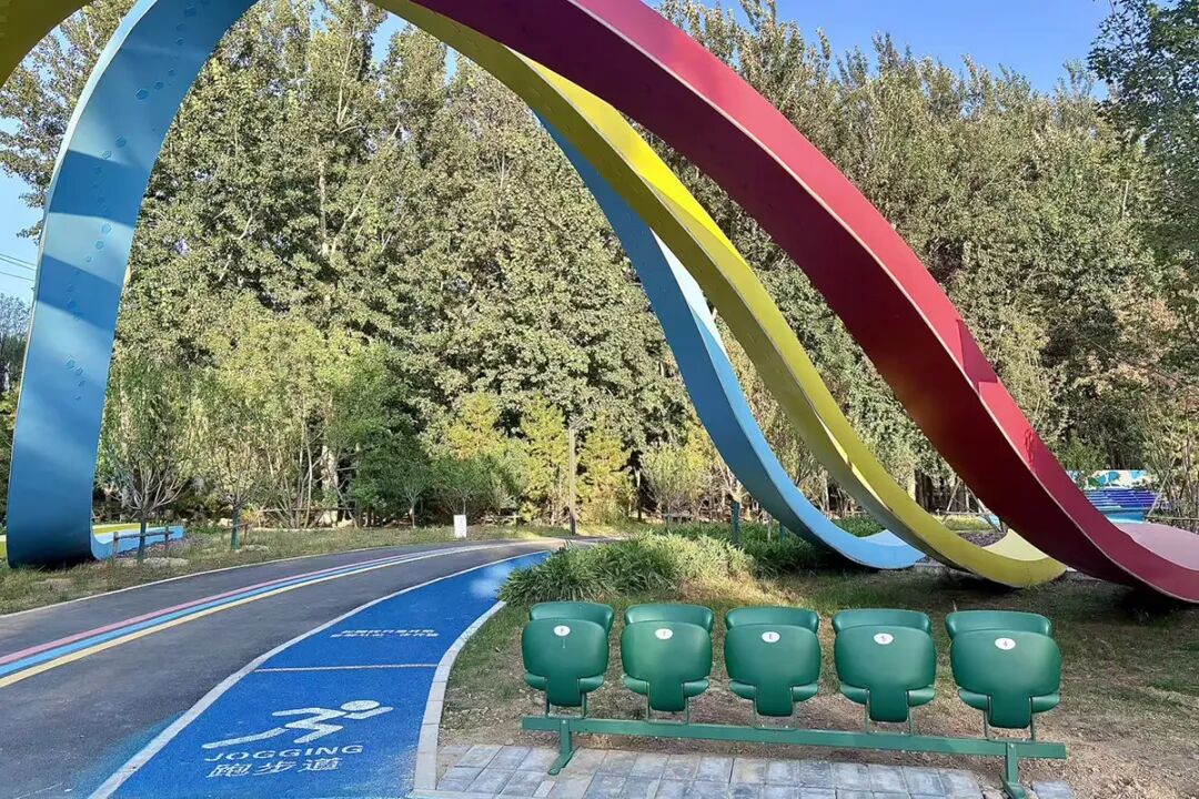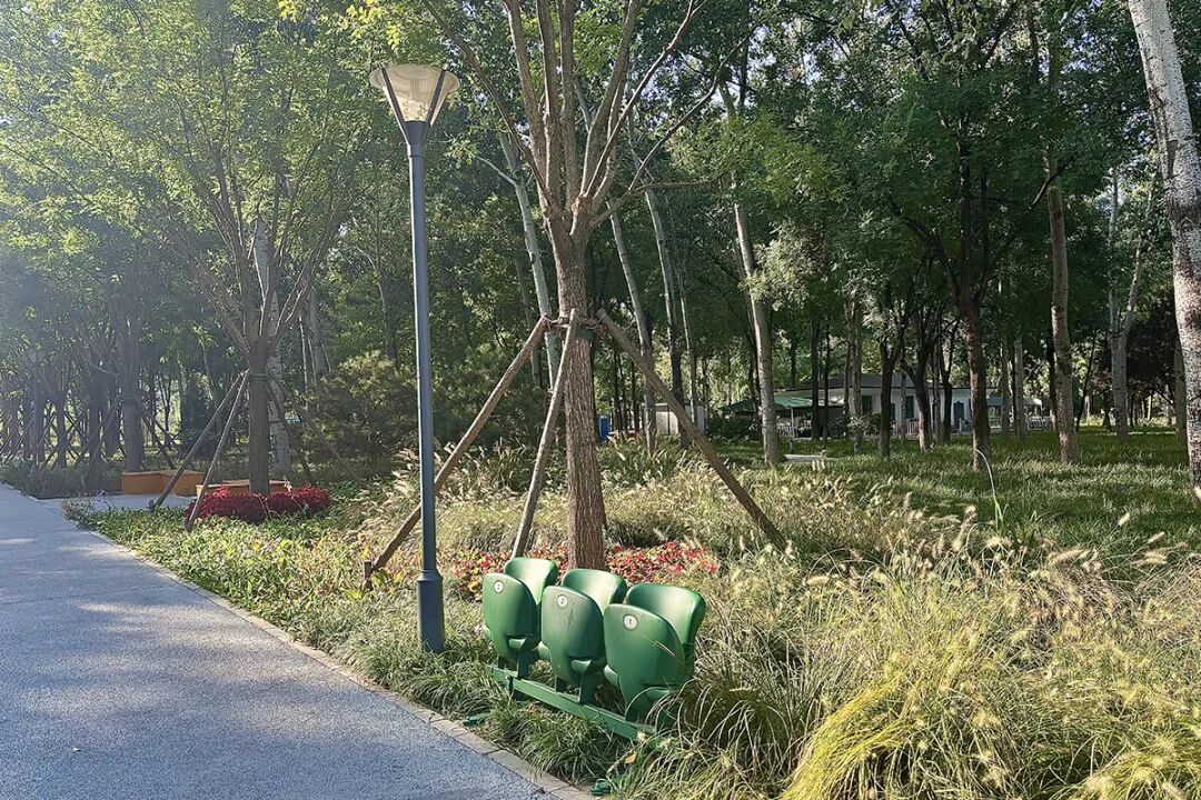 有的设置在沿园路、健身步道旁