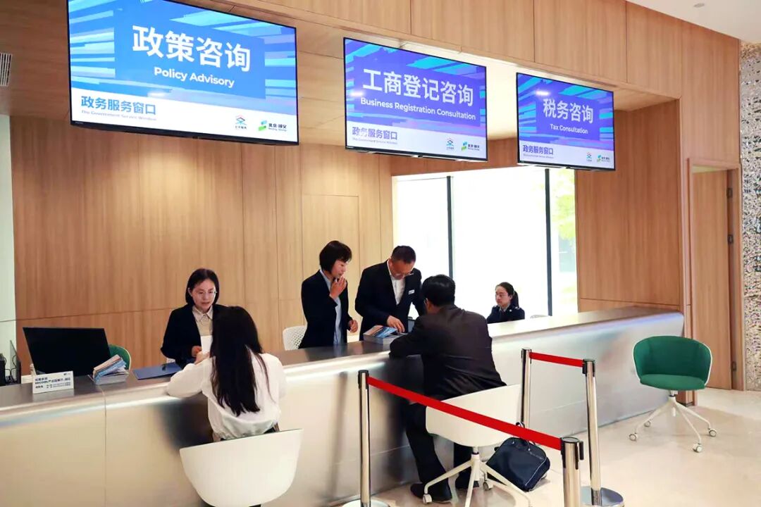 今年5月,HICOOL产业园二期政务服务窗口揭牌,作为园区企业“家门口的政务服务站”,可提供涵盖工商注册、税务登记、科技政策申报、北京市工作居住证和外国人来华工作许可业务咨询受理等“一窗通办”的贴心服务。