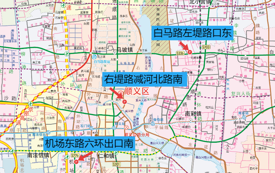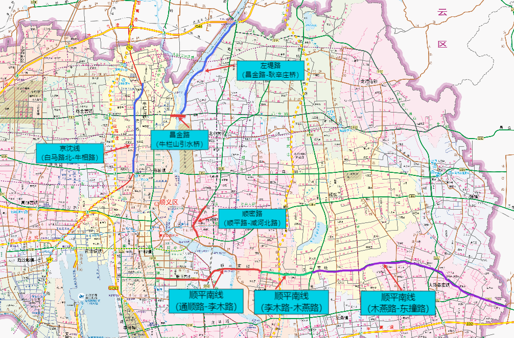 2.顺密路(顺平路至减河北路)施工,机动车、非机动车及行人可绕行左堤路、通怀路等周边道路。