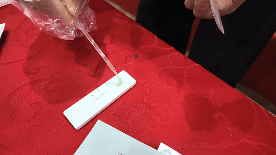记者在发布会现场看到,科研人员取下番茄植株叶片,放入专用研磨袋,并加入特定试剂进行研磨,而后取清液滴入试纸条内,不到3分钟,试纸条已显现结果,番茄植株是否感染上述两种病毒当场即可判断。