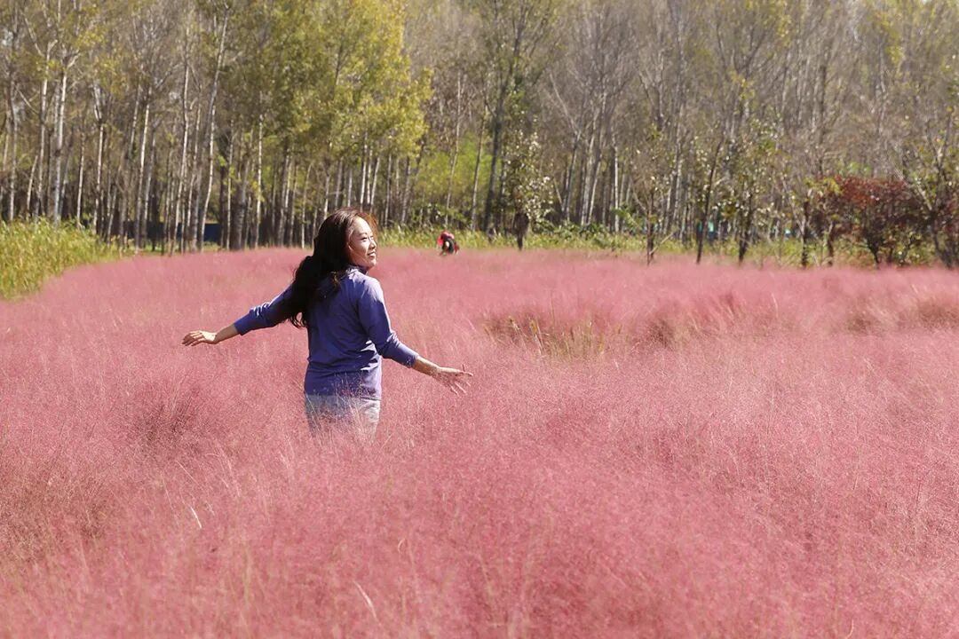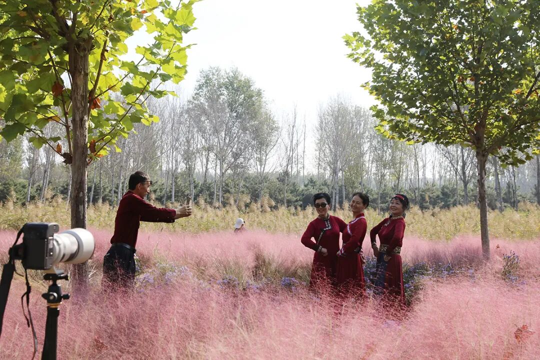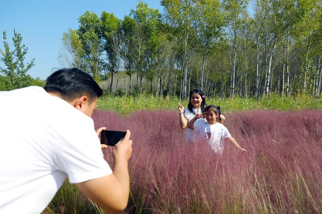 走进东郊湿地公园(顺义园),那片朦胧的粉色花海便跃入眼帘。