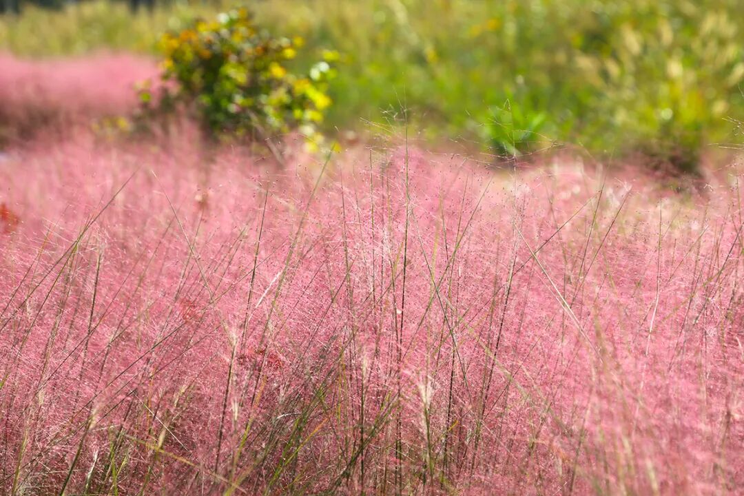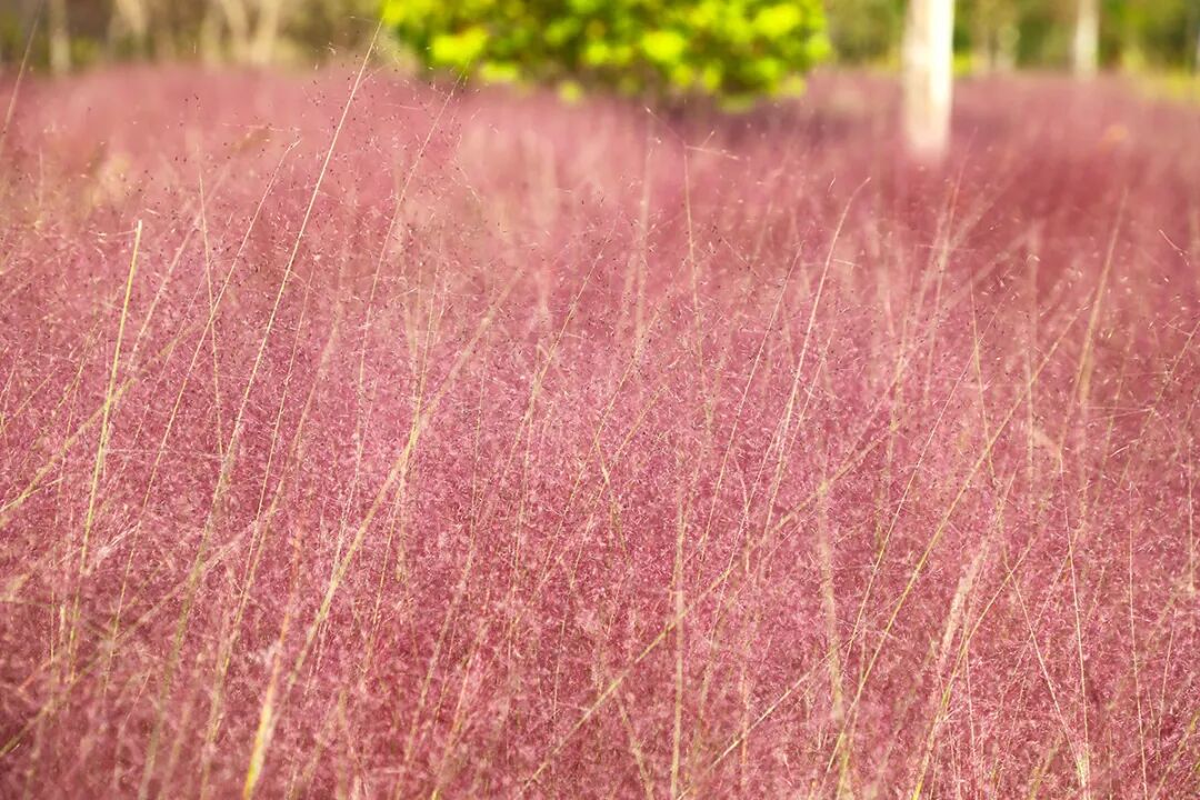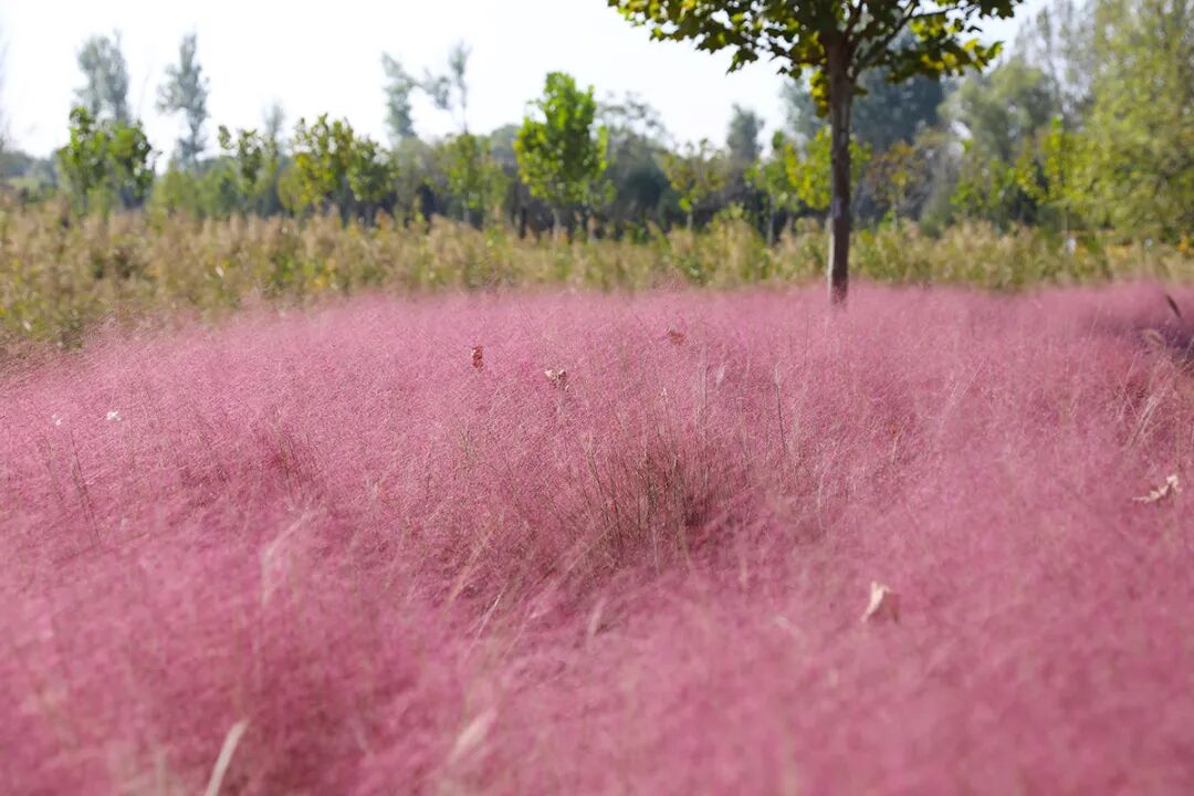 远远望去,一大片粉黛乱子草连绵不绝,好似天空遗落的粉色云霞。