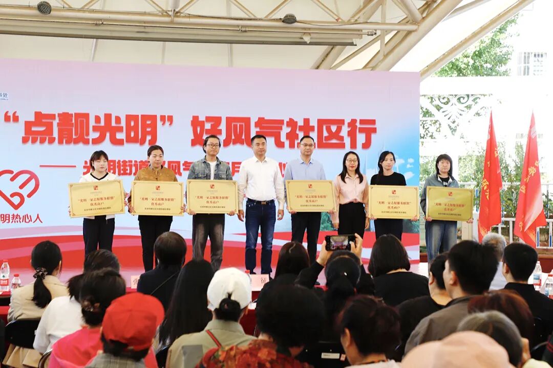 光明街道持续深耕社区好风气建设,一批批“光明热心人”不断涌现。活动现场,光明街道为15名在志愿服务领域表现突出的“光明热心人”颁发荣誉证书,并再现今年以来寄出168封表扬信的场景,致敬那些在志愿服务中默默付出的热心人和群体。6家“光明一家志愿服务联盟”优秀商户上台接受授牌,他们用实际行动,生动诠释了企业的责任与担当。