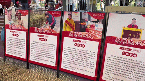 在“光明热心人”事迹展览区域,23名“光明热心人”和7个“光明热心人集体”的故事令人感动。刘爱萍发挥心理咨询师专长,为社区青少年普及心理健康知识、举办家庭亲子心理沟通疏导课,改善家庭亲子关系。宋宇瞳8岁加入社区环保志愿队伍,热衷环保公益,还在生态环境部宣传教育活动中荣获优秀奖……他们积极投身环境保护、心理疏导、邻里帮扶、文化建设等多个志愿服务领域,为“顺义好风气”建设注入温暖力量。
