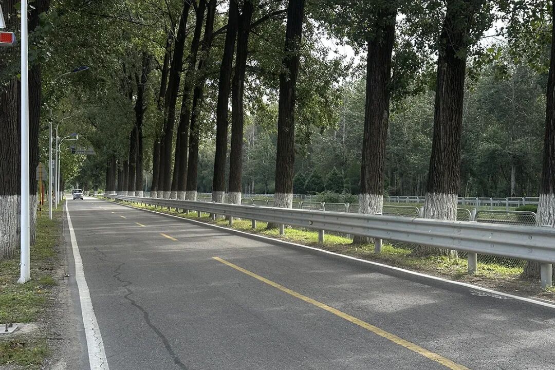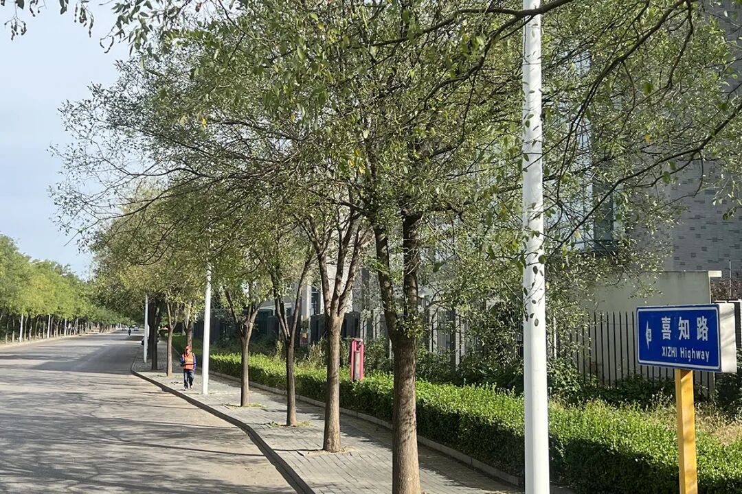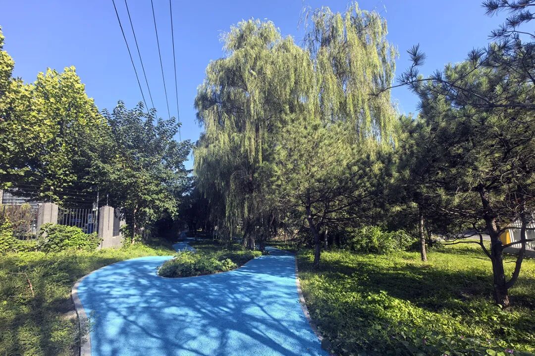 高丽营喜知路一侧设计了健身步道。