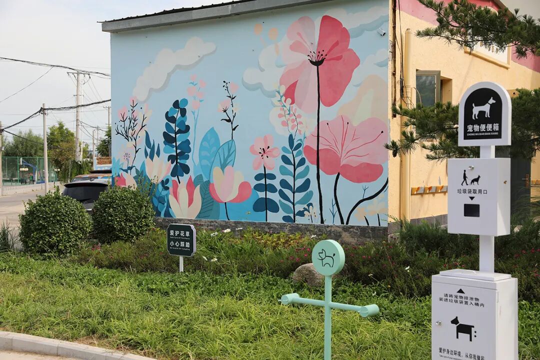 北石槽镇怀昌路路侧的休闲广场和墙体彩绘。