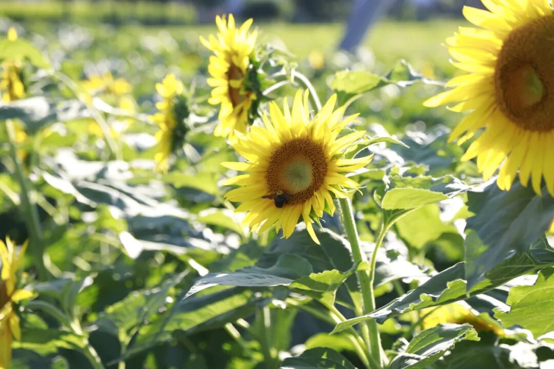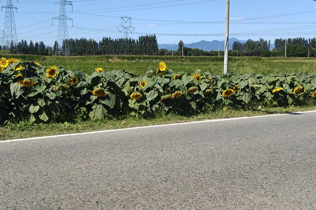向日葵点缀木林镇木孝路。