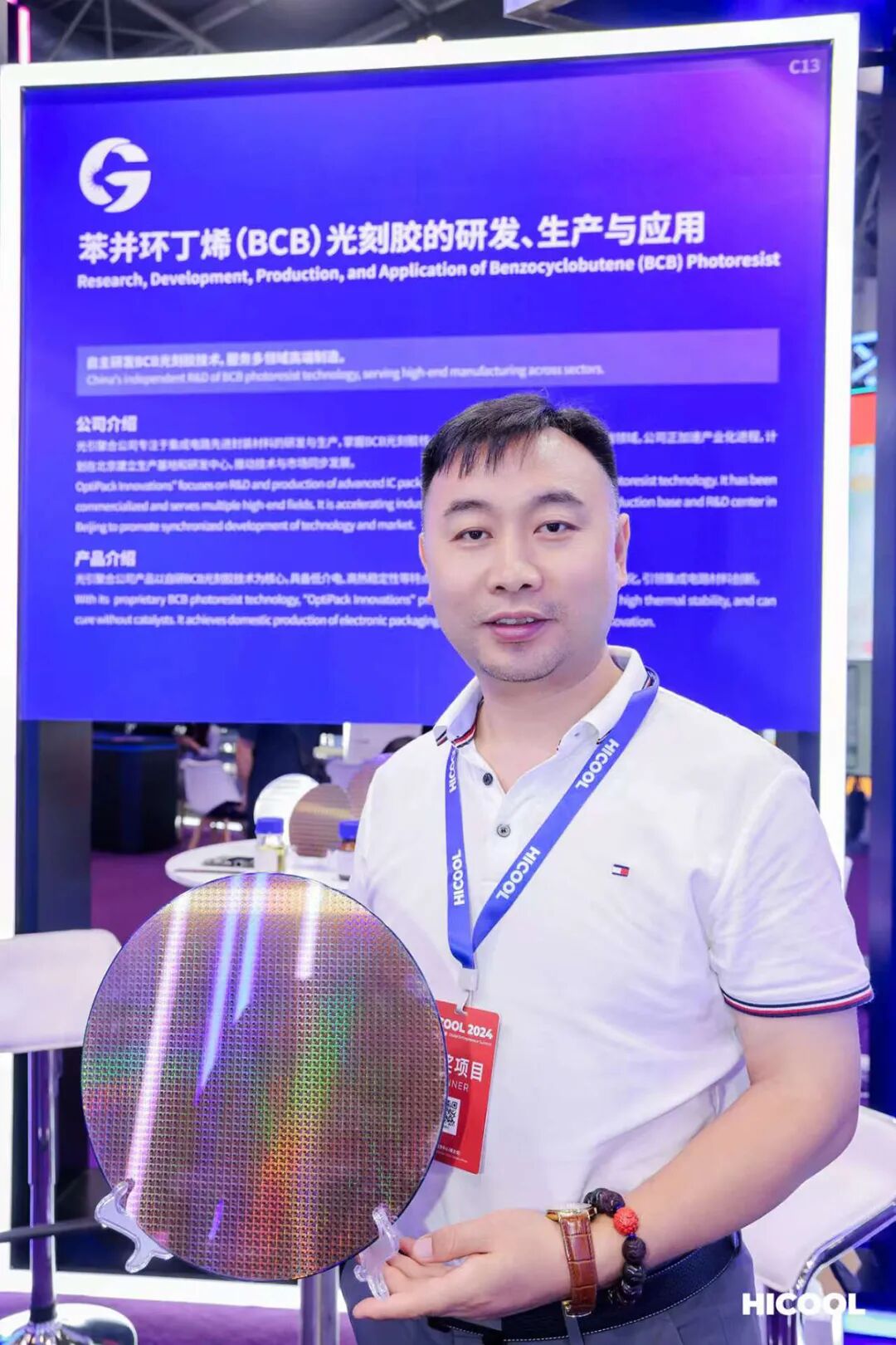 2024年8月,付立平与合作伙伴共同创立的北京光引聚合科技有限公司落户HICOOL产业园。公司主营业务涵盖BCB光刻胶及配套衍生产品的研发、生产与销售,是国内首家具备实现BCB光刻胶全产业链量产能力的企业。