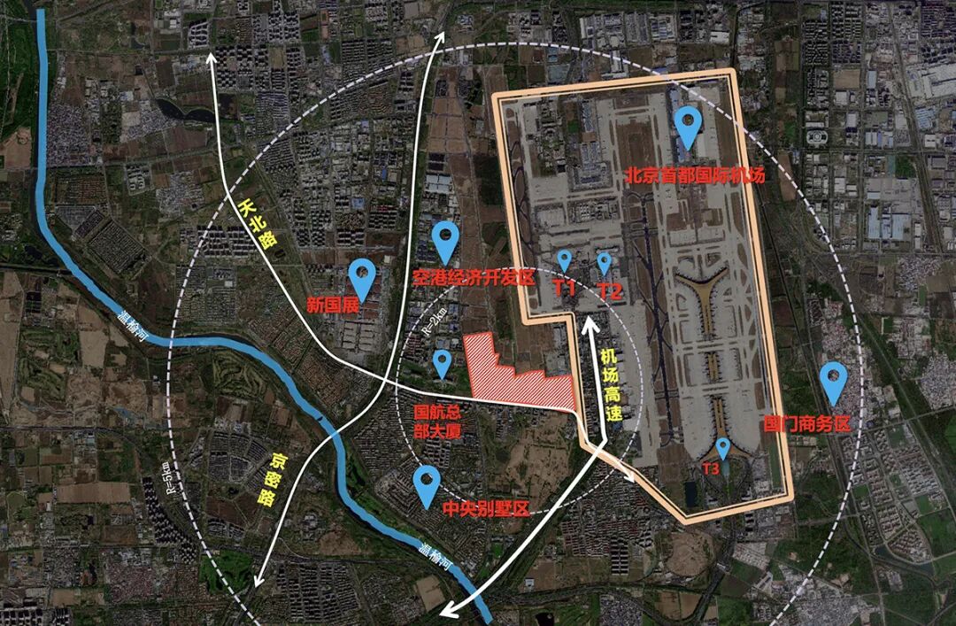 项目位于天竺镇核心区域,东至货运路、南至天北路、西至天柱东路、北至规划道路,总用地面积约102万平方米,现状建筑规模约45万平方米。20世纪90年代,首都机场临空经济区集聚了较多工业仓储企业和酒店餐饮配套,而随着区域经济结构调整和产业升级,部分楼宇、厂房出现空置,景观环境品质亟待提升。